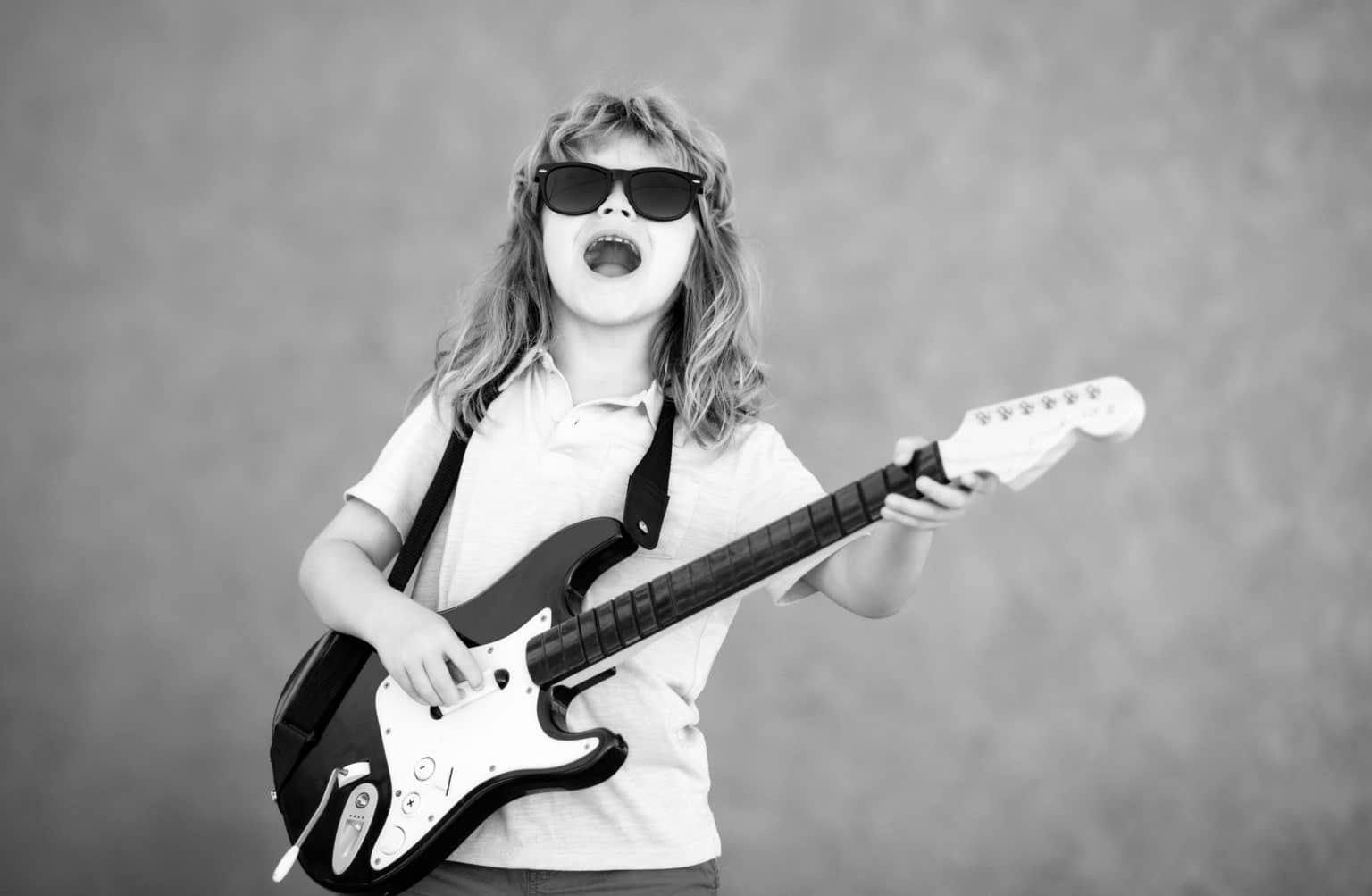 enfant, guitare, lunette, rock